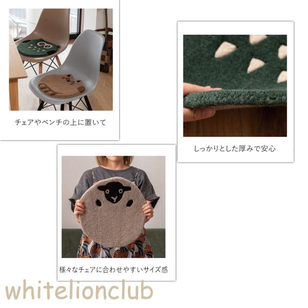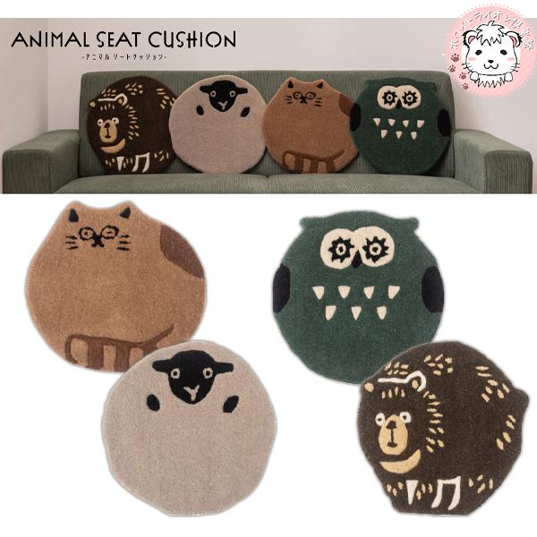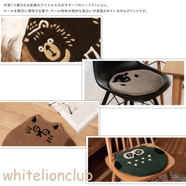 アニマル シートクッション FBA-012 動物デザイン ウール コットン チェア ベンチ 椅子 イス キャラクター 猫 ふくろう ひつじ くま かわいい 厚さ1.5cm