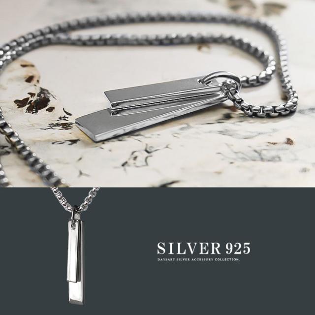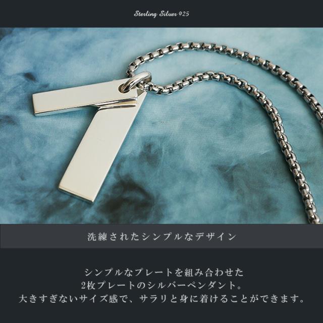 シルバーペンダント メンズ レディース シルバー925 プレート シンプル 無地 無垢 ダブルプレート 2枚 2プレート 2連 チェーン付き チャーム ペンダントトップ シルバー pe416