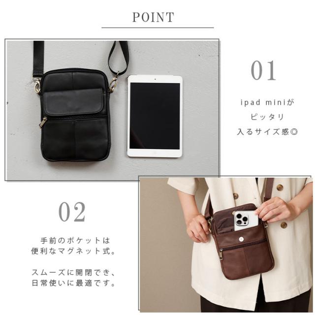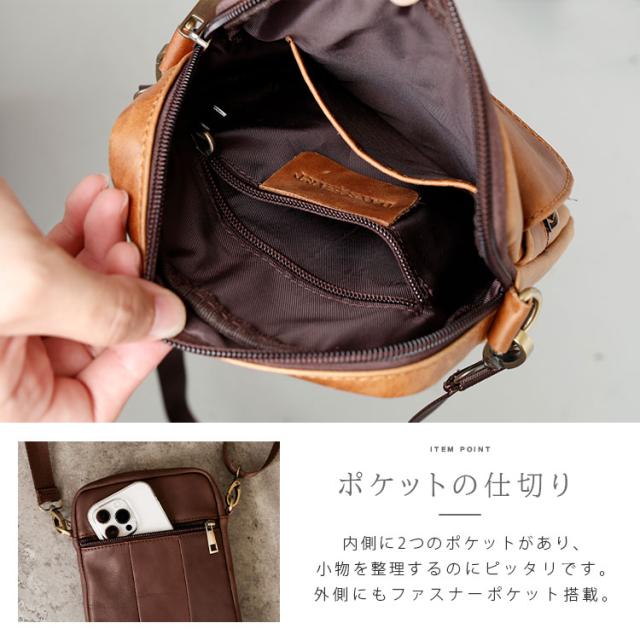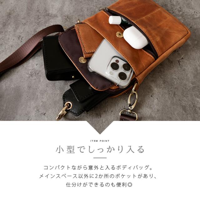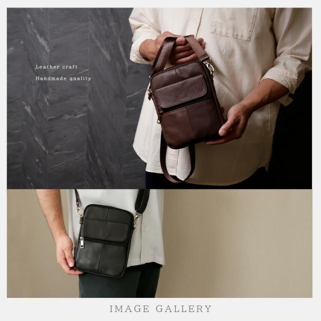 レザーバッグ メンズ ショルダーバッグ サコッシュ バッグ レディース 本革 シュリンクレザー ハンドメイド レザー ブラック ダークブラウン ギフト ab-lb041