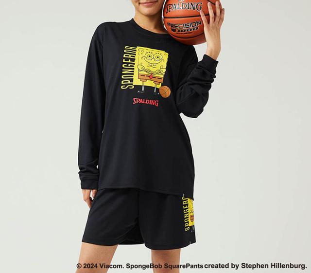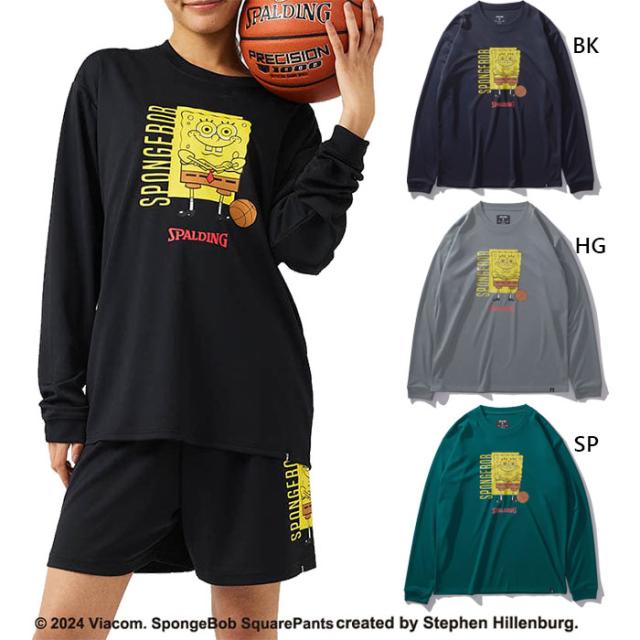 スポルディング メンズ レディース ロングスリーブTシャツ スポンジ・ボブ バスケットボール フリーク バスケットボールウェア トップス 長袖Tシャツ ブラック 黒 グレー グリーン 灰色 緑 送料無料 SPALDING SMT24142S