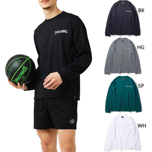 スポルディング メンズ レディース ロングスリーブTシャツ ホログラム ワードマー バスケットボールウェア トップス 長袖Tシャツ ロンT ブラック 黒 グレー 灰色 送料無料 SPALDING SMT24177