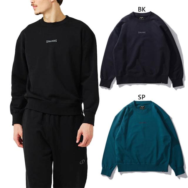 スポルディング メンズ レディース コートサイド クルーネック プルオーバー バスケットボールウェア トップス 長袖 トレーナー ブラック 黒 グリーン 緑 送料無料 SPALDING SMJ24100