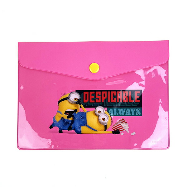 ミニオンの可愛いエンベロープケースです♪明るいピンクの生地と黄色いスナップボタンの組み合わせがポップで、普段使いしやすい可愛さ☆彡中身が柄の向こうから透けて見る所もポイント♪