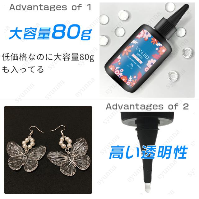 UVレジン液 (#uv306) 当日発送 1本80g LEDレジン液 大容量 レジン液 安い ハード 業務用 クラフトアレンジ レジン用品