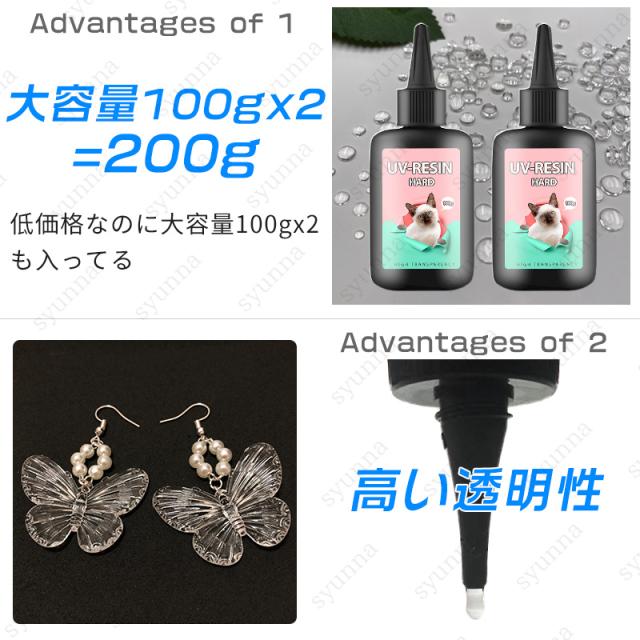 uvレジン液 (#uv301) 大容量 2本セット 当日発送 100g×2 UV-LED対応 レジン液 業務用 レジンクラフト 激安 LED ハードタイプ