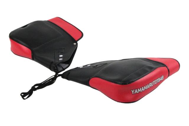 《特徴》 ・50年以上業務用として郵便屋さん、新聞屋さんに愛され続けたヤママルトの防寒ハンドルカバーを、普段のツーリングやアウトドアの場でも使いやすいデザインになって復活。 ・ハンドルカバーを付けていても安心の操作性 ・直接スイッチに触れて操作できる ・3層構造であったかい ・ハンターカブ/クロスカブ専用 《適応車種》 ホンダ ・CT125 ハンターカブ(JA55/JA65) ・クロスカブ 50/110 《注意 》・オプションパーツ(グリップヒーターのスイッチなど)をミラー近辺に取り付けている場合、ハンドルカバー装着前にオプションパーツを移動するか、ハンドルカバーの適切な位置に切り込みを入れるなど加工を行い、スイッチ類をハンドルカバーの外へ出して装着してください。(※加工事例?) ハンドルカバー内の空間でのオプションパーツの取り付け及び操作を絶対に行わないでください。ハンドルカバー内は、基本操作が出来るスペースしかありません。オプションパーツの装着、操作等をハンドルカバー内で行いますとハンドルカバーの破損や、安全運転を阻害する恐れがあります。 →加工事例 https://www.yama-maruto.com/archives/qa/9547 ・冬用の厚手のグローブを装着してのご使用は、スイッチ操作等がしづらくなる場合がございます。薄手のグローブをご使用いただくことをおすすめします。 ・本製品は防寒用です。縫製品につき完全防水ではありません。