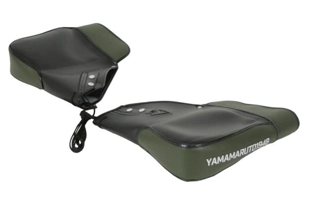 《特徴》 ・50年以上業務用として郵便屋さん、新聞屋さんに愛され続けたヤママルトの防寒ハンドルカバーを、普段のツーリングやアウトドアの場でも使いやすいデザインになって復活。 ・ハンドルカバーを付けていても安心の操作性 ・直接スイッチに触れて操作できる ・3層構造であったかい ・ハンターカブ/クロスカブ専用 《適応車種》 ホンダ ・CT125 ハンターカブ(JA55/JA65) ・クロスカブ 50/110 《注意 》・オプションパーツ(グリップヒーターのスイッチなど)をミラー近辺に取り付けている場合、ハンドルカバー装着前にオプションパーツを移動するか、ハンドルカバーの適切な位置に切り込みを入れるなど加工を行い、スイッチ類をハンドルカバーの外へ出して装着してください。(※加工事例?) ハンドルカバー内の空間でのオプションパーツの取り付け及び操作を絶対に行わないでください。ハンドルカバー内は、基本操作が出来るスペースしかありません。オプションパーツの装着、操作等をハンドルカバー内で行いますとハンドルカバーの破損や、安全運転を阻害する恐れがあります。 →加工事例 https://www.yama-maruto.com/archives/qa/9547 ・冬用の厚手のグローブを装着してのご使用は、スイッチ操作等がしづらくなる場合がございます。薄手のグローブをご使用いただくことをおすすめします。 ・本製品は防寒用です。縫製品につき完全防水ではありません。