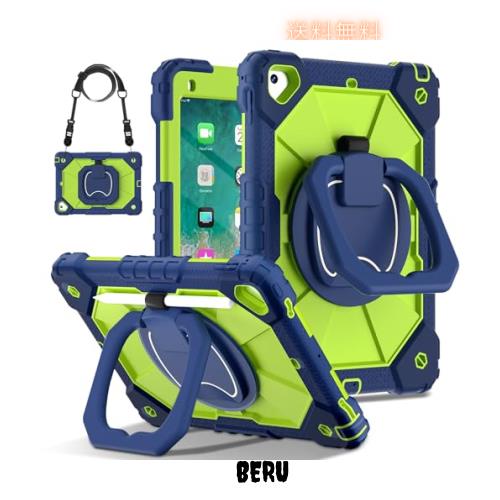 360°旋回 iPad Air2 iPad5 iPad6 Pro9.7ケース 取っ手 子ども キッズ 頑丈 iPad 第 6 5 世代 9.7 インチ カバー 持ち手付き 回転式 キックスタンド ハンドストラップ シリコン アウトドア 横置き 縦置き ペンホルダー付き多機能 耐衝撃 カバー,ネイビー+緑