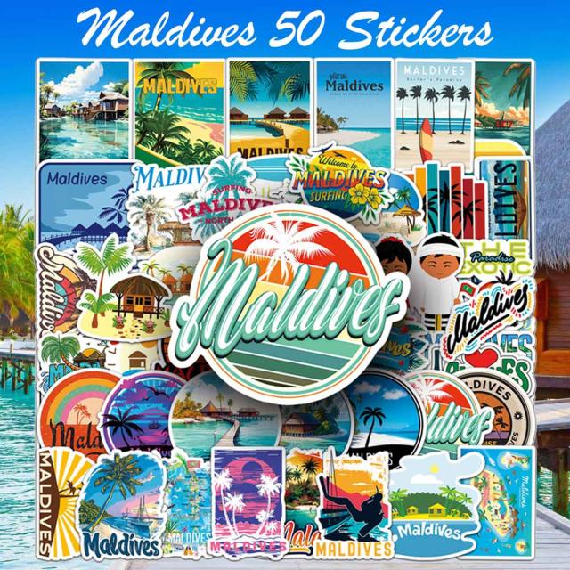 モルディブ ステッカー 50枚セット PVC 防水 シール Maldives 旅行 観光 トラベル ビーチ リゾート 海外旅行 スーツケース