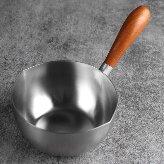 工房アイザワ ミルクパン 両口付ミルクパン 木柄手造 13cm ( aizawa ステンレス ガス火専用 日本製 片手鍋 片手なべ 両口鍋 小鍋 ソースパン 木柄 アイザワ ガス火対応 13センチ 小ぶり 鍋 なべ 両口 高品質 シンプル 燕三条 )