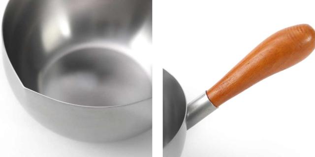 注ぎ口が左右にある便利な両口仕様なので、利き手を気にせず使用することができます。煮汁やスープを注いだり、水切れがよく最後の調整もしやすいこだわりの注ぎ口です。