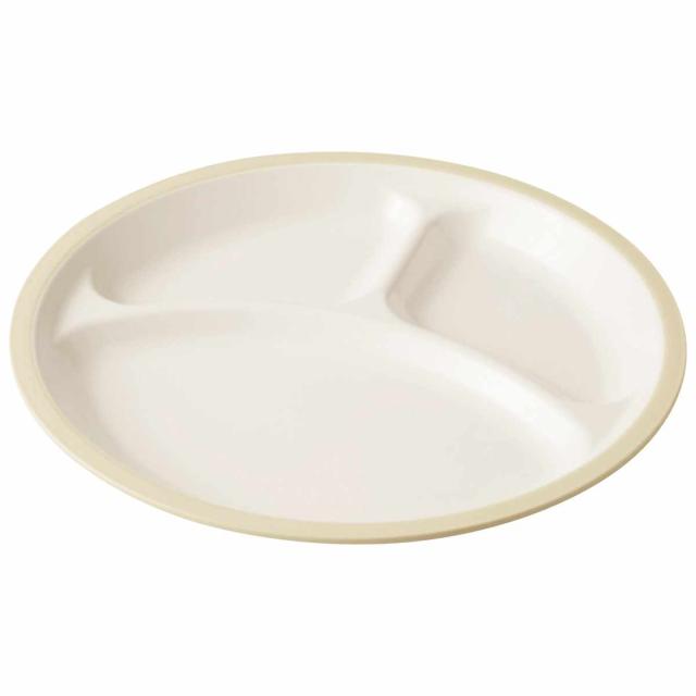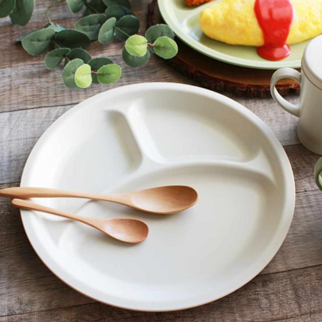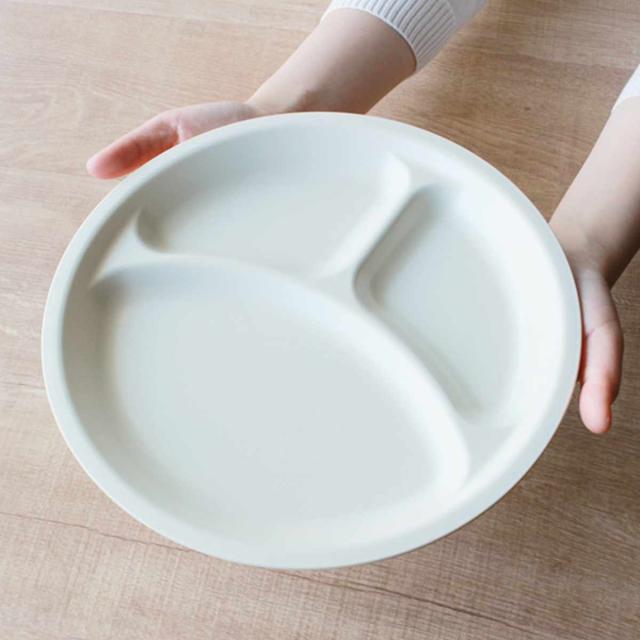 樹脂製で軽くて割れにくく、お子様からシニアまで世代を選ばないランチプレートです。主菜と副菜、デザートなどをバランス良く盛りつけることができます。仕切り付きなので、味が混ざりません。