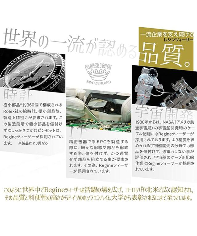 Regine社は、時計などの精密機器の細かい部分をつまむ高品質なツィーザーの開発・製造を続け100年以上もの間、全ての工程を一本一本手作業で作り続けています。