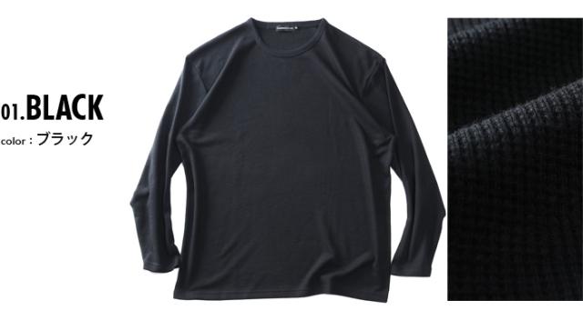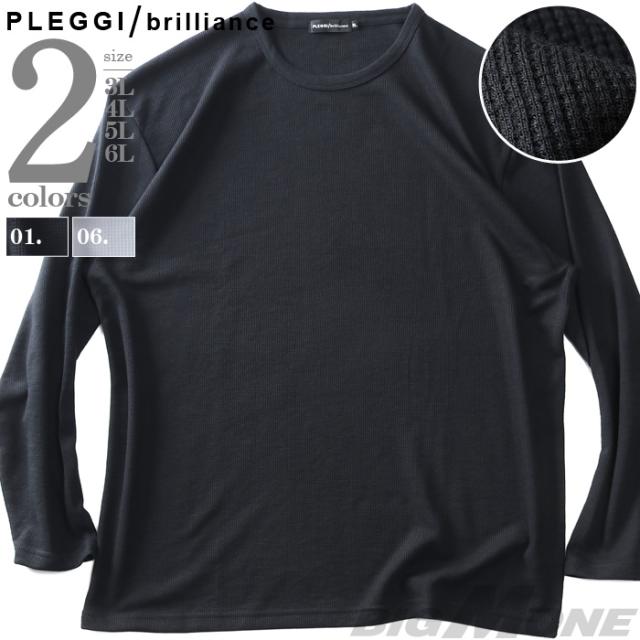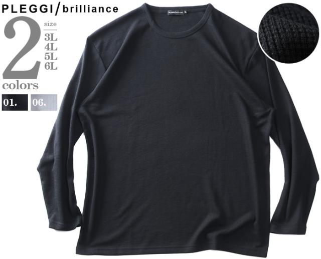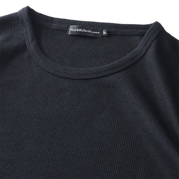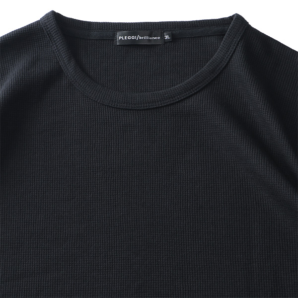 大きいサイズ メンズ PLEGGI プレッジ ワッフル クルーネック ロング Tシャツ 64-77585-2