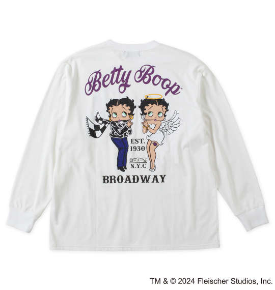 大きいサイズ メンズ BETTY BOOP 天竺 プリント 長袖 Tシャツ オフホワイト 1278-4630-1 3L 4L 5L 6L