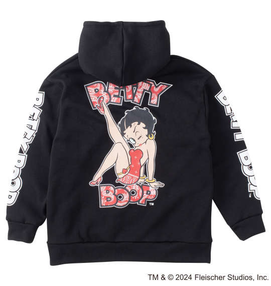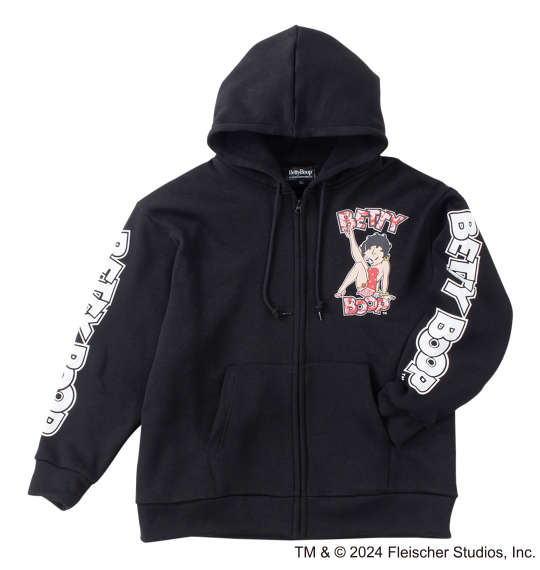 大きいサイズ メンズ BETTY BOOP ニット フリース プリント フルジップ パーカー ブラック 1278-4631-2 3L 4L 5L 6L