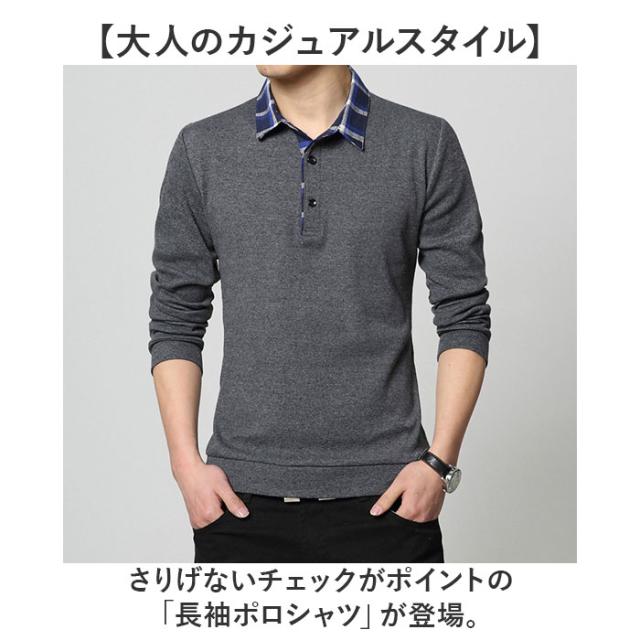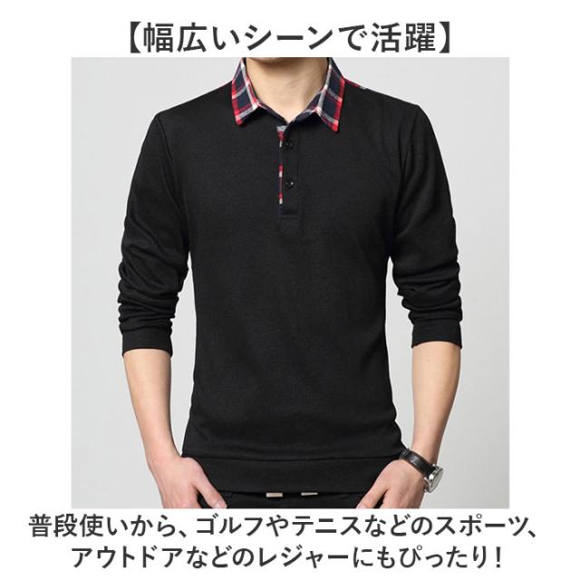 ポロシャツ メンズ 長袖 通販 Poloシャツ ポロシャツメンズ Poloシャツメンズ 長袖シャツ 長袖ポロシャツ ステンカラーシャツ メンズポロシャツ ゴルフシャツ 普段着 チェック柄