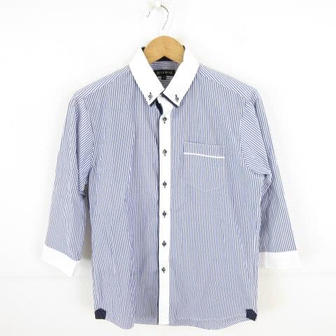 【中古】ノータベネ NOTA BENE ボタンダウンシャツ 七分袖 ストライプ 青 白 M *A62 メンズ
