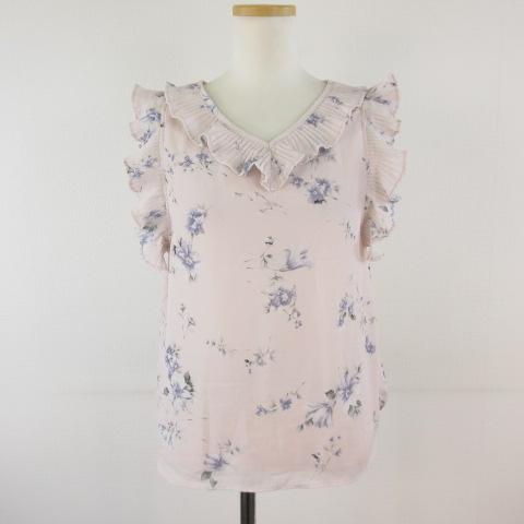 【中古】エブリン evelyn カットソー ブラウス ノースリーブ 花柄 ピンク *T391 レディース