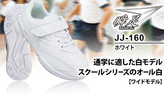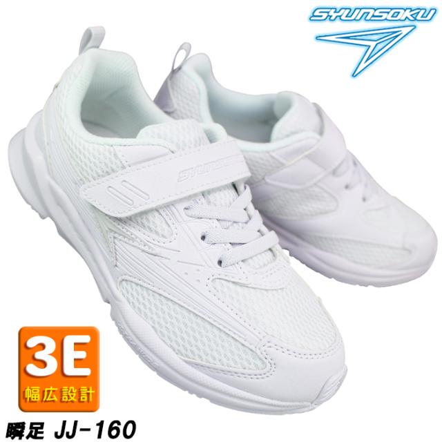 瞬足 JJ-160 白 通学スニーカー 白スクールシューズ 通学靴 白靴 運動靴 SJJ1600 メッシュ マジックテープ 3E幅 605後継モデル