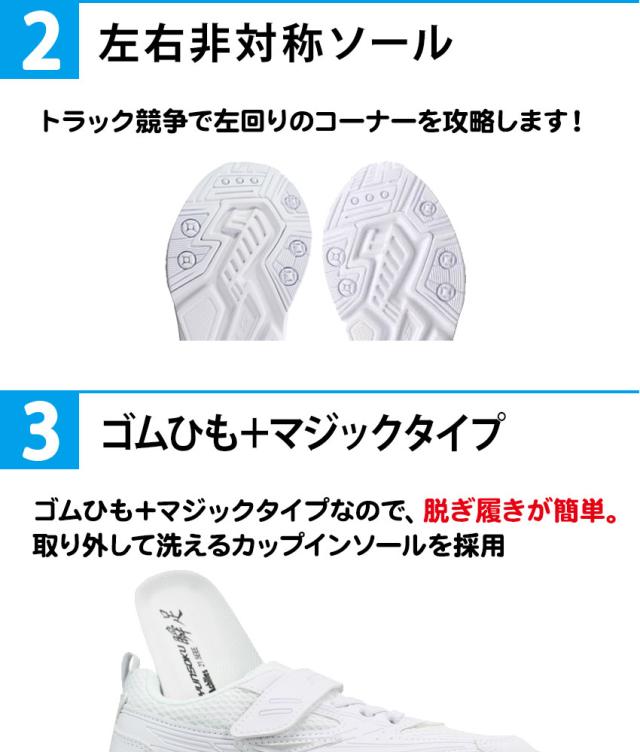 トラック競争で左回りのコーナーを攻略するための左右非対称設計のソール&スパイク採用モデル。