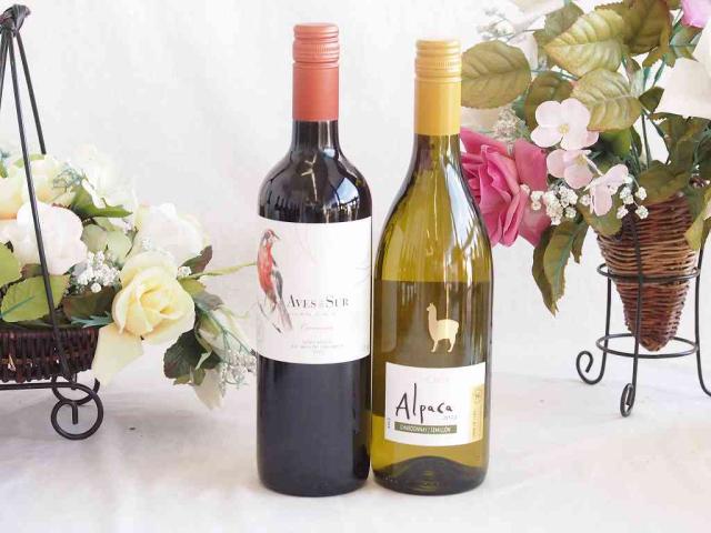 人々に愛されチリ赤白ワイン 2本セット(デル・スール カルメネール赤 アルパカ シャルドネ セミヨン白) 750ml×2本