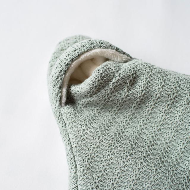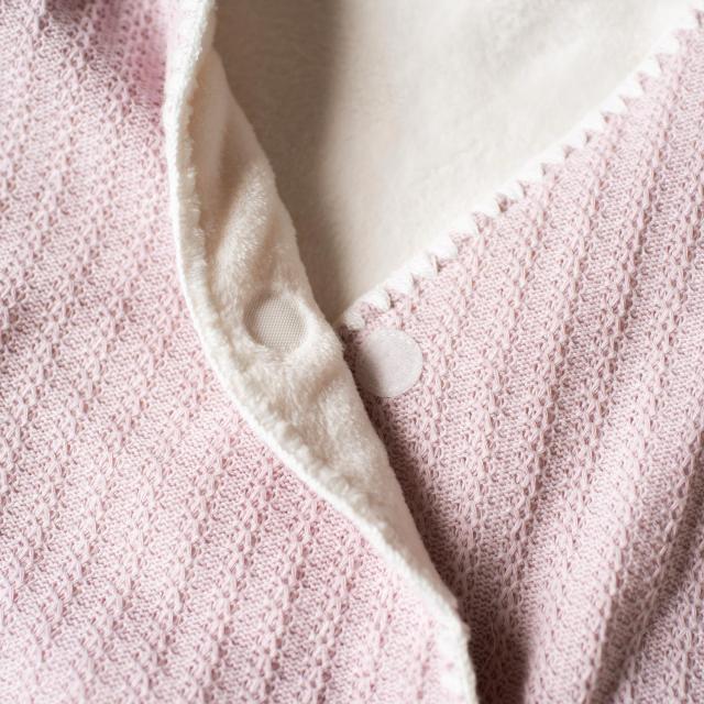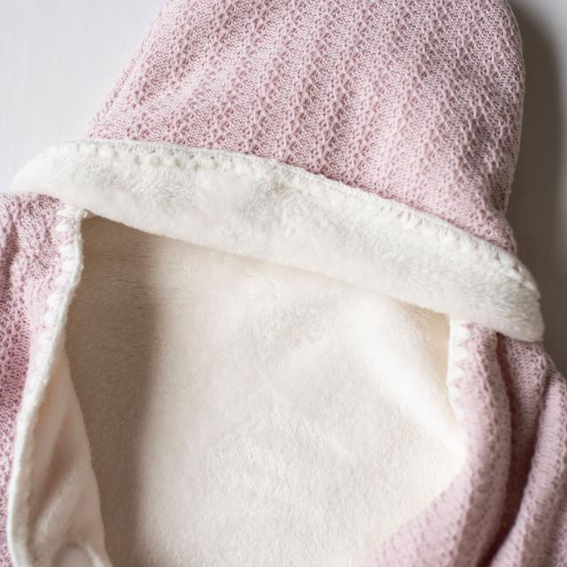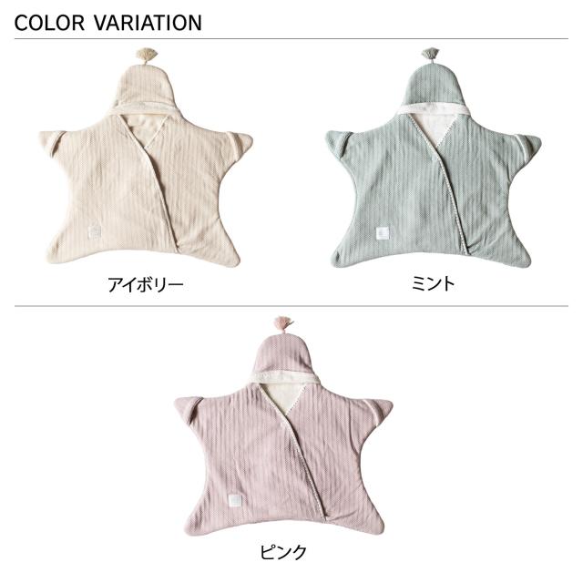 赤ちゃんをくるむとお星様のような姿に変身!落ち着きのあるニット素材がお上品なおくるみです。内側は肌触りの良いふわふわのフリース素材で、しっかり暖かく。足が分かれているので、着せたままベビーカーや抱っこ紐に乗せられて便利です。お出かけのお供にはもちろん、おうちでの寝かしつけにもおすすめ。キラッと光るブランドネームがさりげないアクセントになっています。