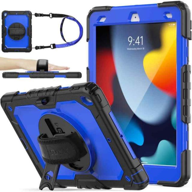 SEYMAC stock iPad ケース 耐衝撃ハンドストラップケース ショルダーストラップ付き (iPad 10.2インチ, ブルー+ブラック)
