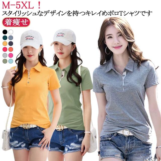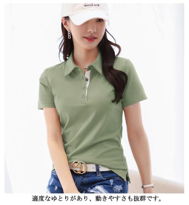 無地 半袖 夏服 M-5XL!ポロシャツ スリム サイドスリット レディース 襟付き お洒落 トップス きれいめ オフィス カジュアル 女性 ビジネス 着痩せ 制服 通勤 アウトドア 送料無料
