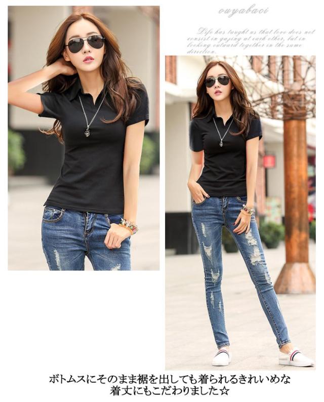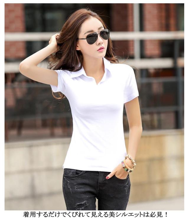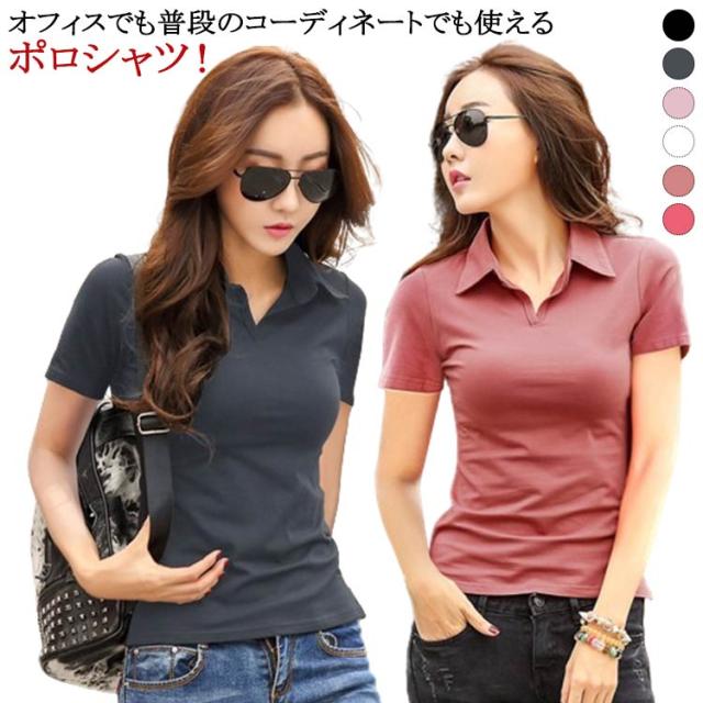 夏服 ストレッチ スリム 半袖 トップス 襟付き オフィス ポロシャツ レディース カジュアル タイト きれいめ Yシャツ 無地 お洒落 女性 ビジネス 着痩せ 送料無料