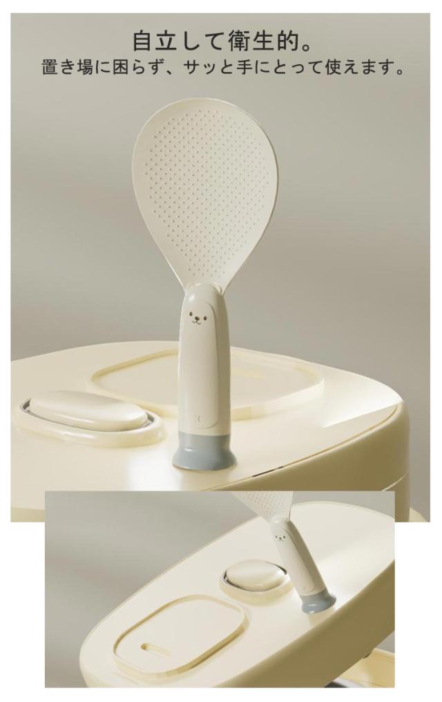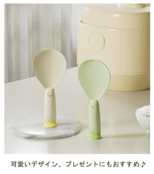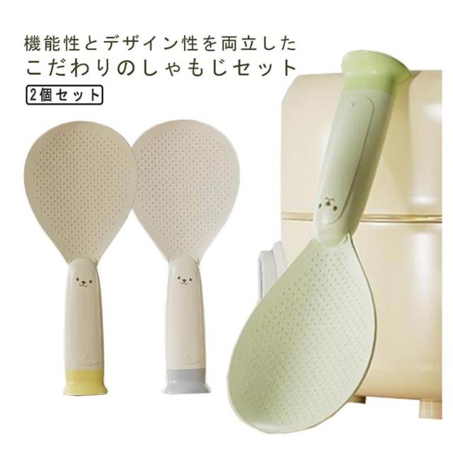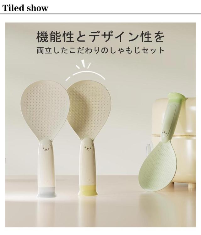 | 機能性とデザイン性を両立したこだわりのしゃもじセット 自立して衛生的。置き場に困らず、サッと手にとって使えます。 ご飯がこびりつきにくいシリコン素材を採用します。 フチが薄く、ご飯をつぶさずにサクサクすくえます。 お手入れ楽々!びっくりするほど汚れが落ます。 可愛いデザイン、プレゼントにもおすすめ♪ | |