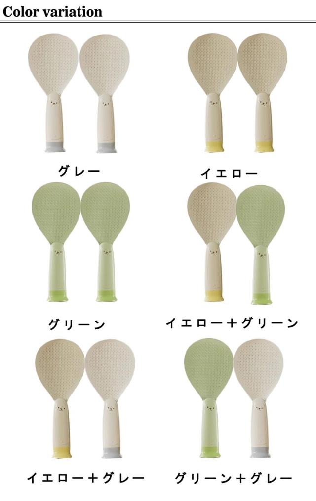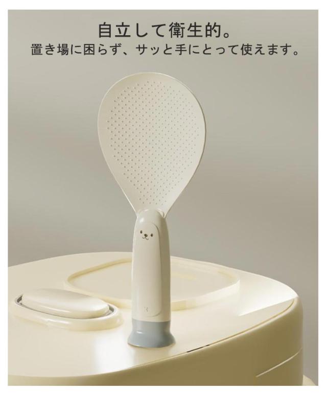 | 機能性とデザイン性を両立したこだわりのしゃもじセット 自立して衛生的。置き場に困らず、サッと手にとって使えます。 ご飯がこびりつきにくいシリコン素材を採用します。 フチが薄く、ご飯をつぶさずにサクサクすくえます。 お手入れ楽々!びっくりするほど汚れが落ます。 可愛いデザイン、プレゼントにもおすすめ♪ | |