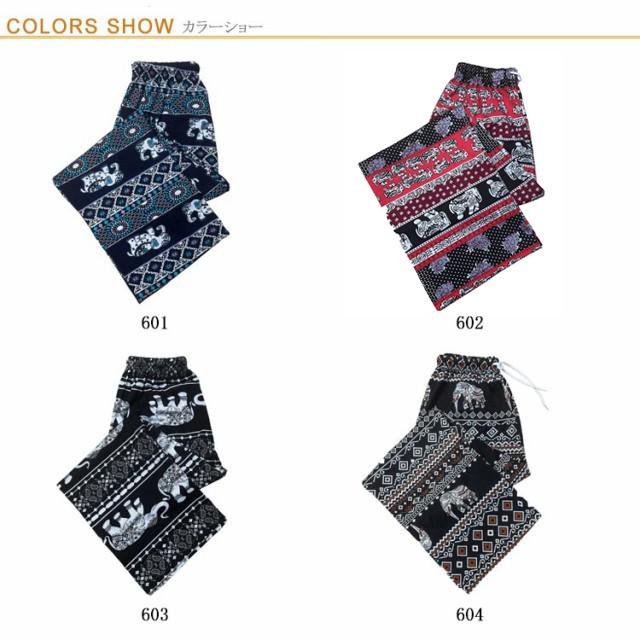 可愛い レディース 部屋着 春夏 タイパンツ アジアン ワイドパンツ ゾウ柄 ロングパンツ ルームウェア エスニック 軽い ストレート ヴィンテージ カジュアル 薄手 体型カバー イージーパンツ