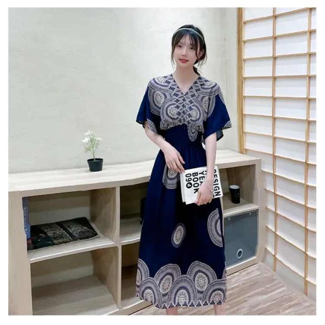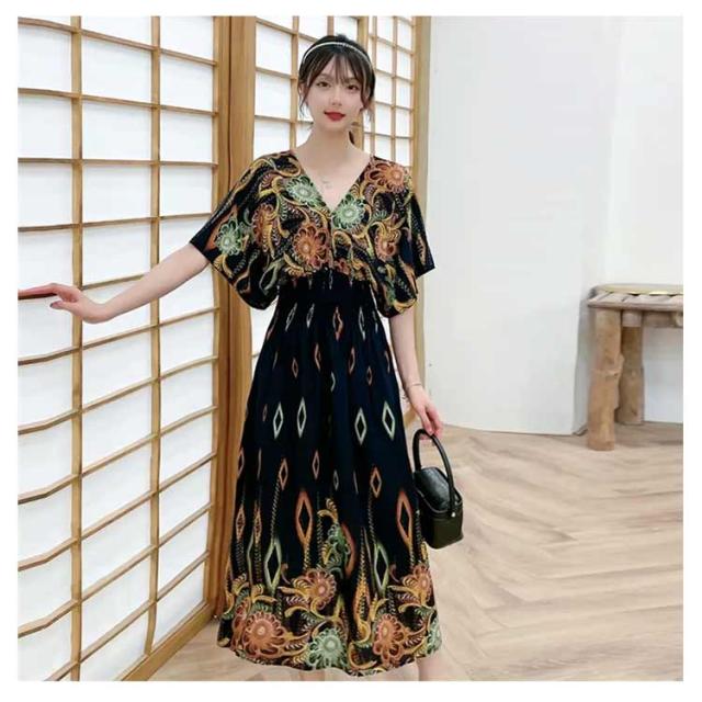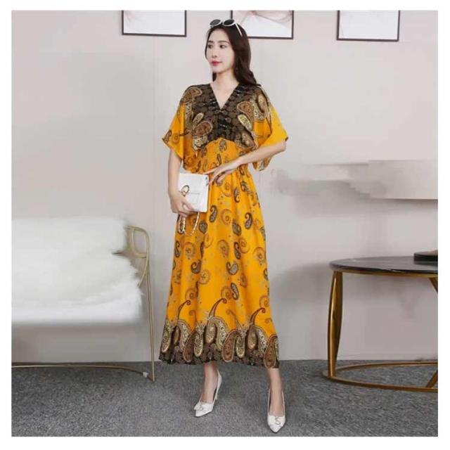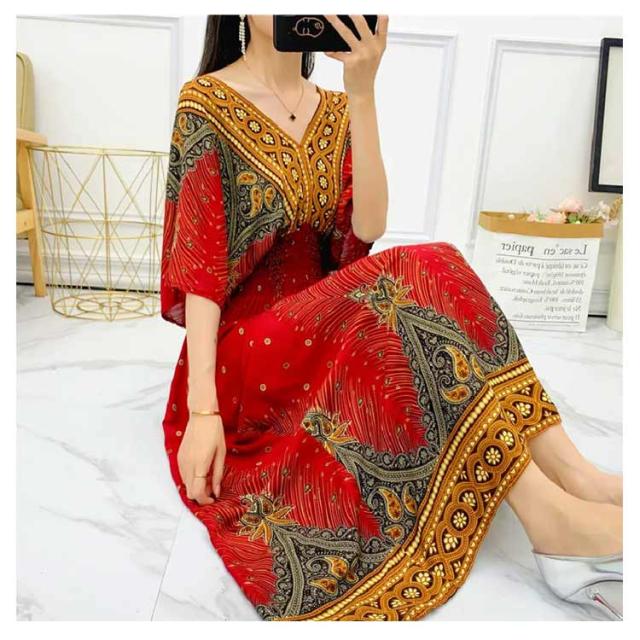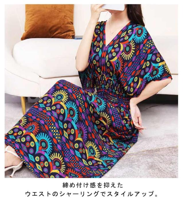 柔らかい エキゾチック 総柄 リゾート 花柄 リゾートワンピース おしゃれ ワンピース 半袖 ロング丈 ロング Vネック マキシ丈 夏 アジアン マキシワンピース 個性的 海 リゾートワンピース きれいめ エスニック 花柄 沖縄 海外旅行 体型カバー ゆったり 着?せ ギフト