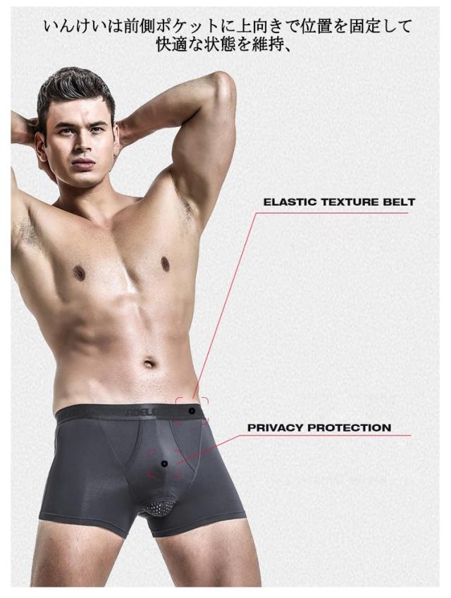 | 見た目は普通のボクサーパンツ ぞうさんメンズボクサーパンツ 素材は細菌やダニの繁殖を防ぐ、吸汗速乾、接触冷感、防臭、制電、通気等の効力があります。 いんけいは前側ポケットに上向きで位置を固定して快適な状態を維持、 立ったり座ったりしたときのポジションチェンジ要らずで快適です。 | |