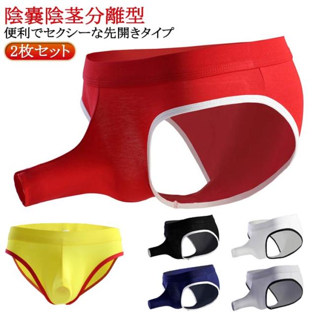 分離型パンツ 分離 貫通 ゾウさんパンツ 2枚セット 竿出し メンズ下着 竿付 竿玉 ぞうさん 通気性 竿付き ブリーフ 前開き 穴あき 快適 速乾 メンズ 薄手 セクシー ぞうさん 2枚セット ブリーフパンツ 黒 白 赤 紺 灰 黄