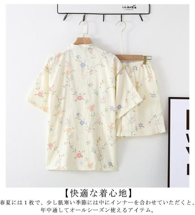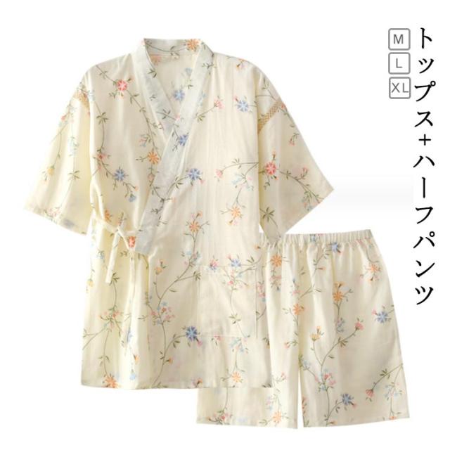 甚平 パジャマ バスローブ レディース 前開き 綿 旅館 寝巻き 女性用 浴衣 レディース 上下セット バスローブ 薄手 ルームウェア ナイトウエア セパレートパジャマ 着物 和風 五分袖 甚平 部屋着 和式 春 夏 柔らかい