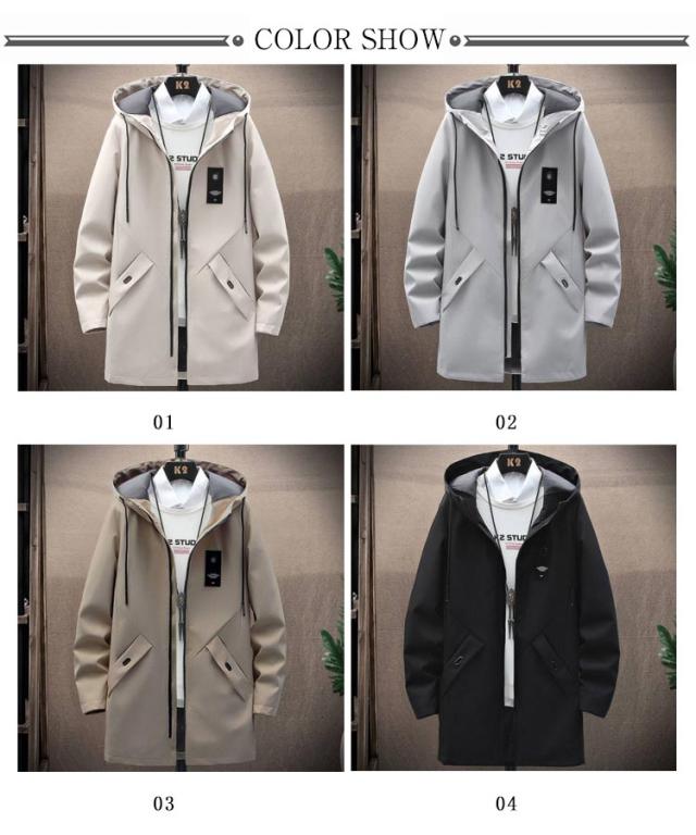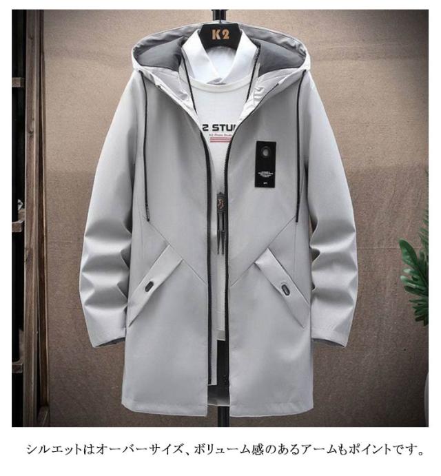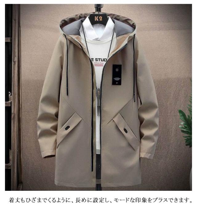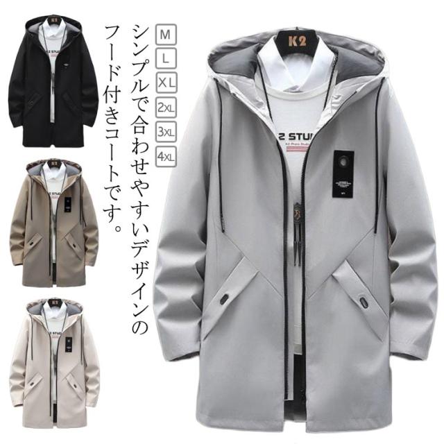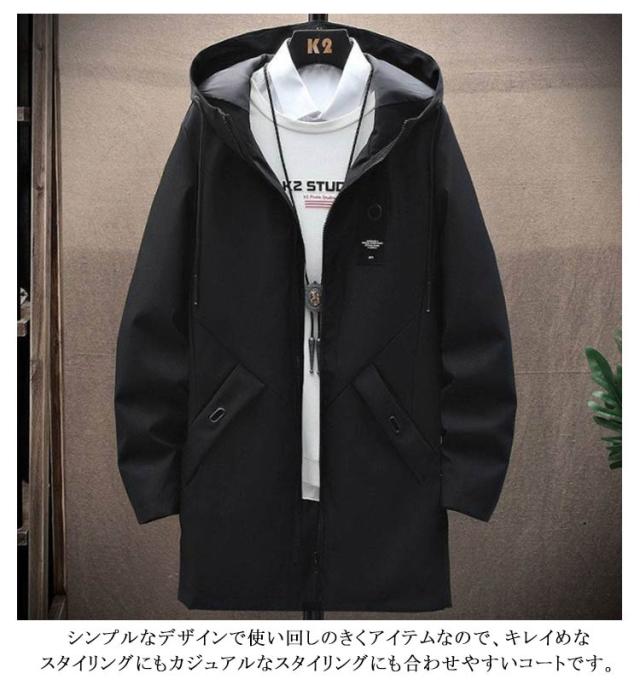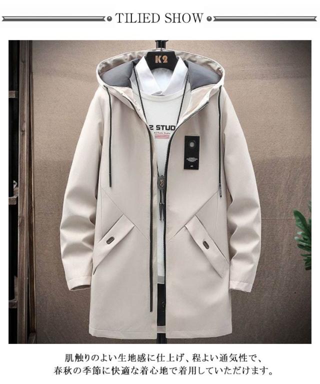 ステンカラーコート ロングコート 春秋 メンズ トレンチコート フード付き メンズ ジャケット ブルゾン 防寒 ミリタリーコート アウター スプリングコート 防風 カジュアル ジャンパー 大きいサイズ シンプル ビッグシルエット