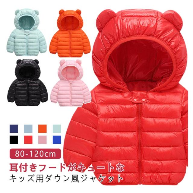 | 80-120cm 耳付きフードがキュートなキッズ用ダウン風ジャケット 肌寒い日にさっと羽織れる中綿ジャケット 気分に合わせて色をチョイス♪ | |