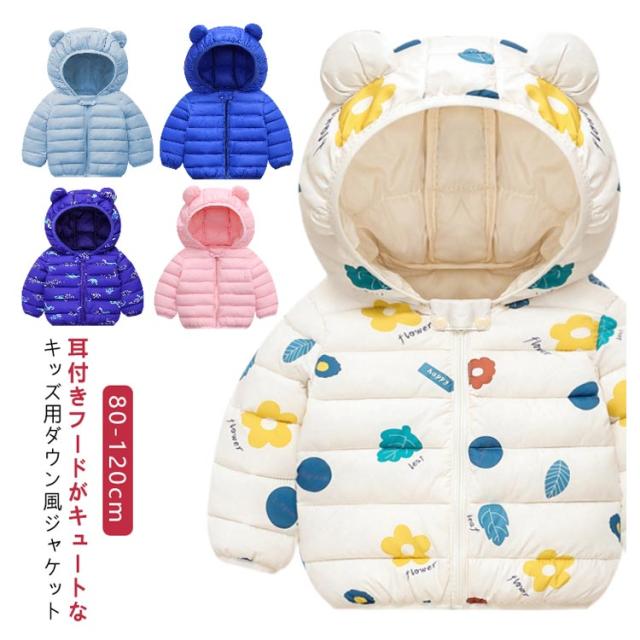 | 80-120cm 耳付きフードがキュートなキッズ用ダウン風ジャケット 肌寒い日にさっと羽織れる中綿ジャケット 気分に合わせて色をチョイス♪ | |