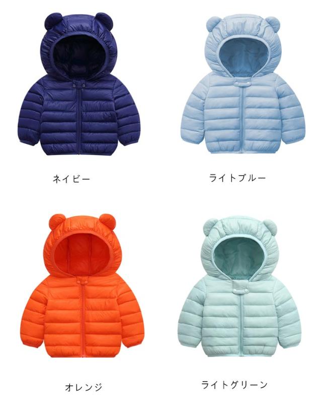| 80-120cm 耳付きフードがキュートなキッズ用ダウン風ジャケット 肌寒い日にさっと羽織れる中綿ジャケット 気分に合わせて色をチョイス♪ | |