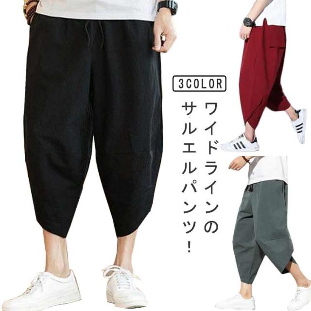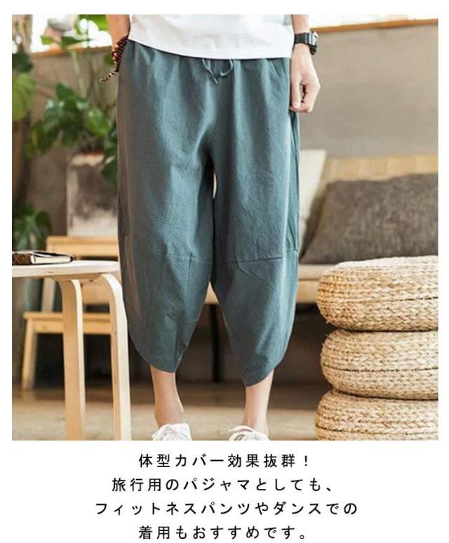 スウェット 綿麻 メンズ 春夏 パンツ スウェットパンツ サルエルパンツ サルエルパンツ メンズ 7分丈 パンツ リラックスパンツ クロップドパンツ ルームウェア 秋 部屋着 アラジンパンツ