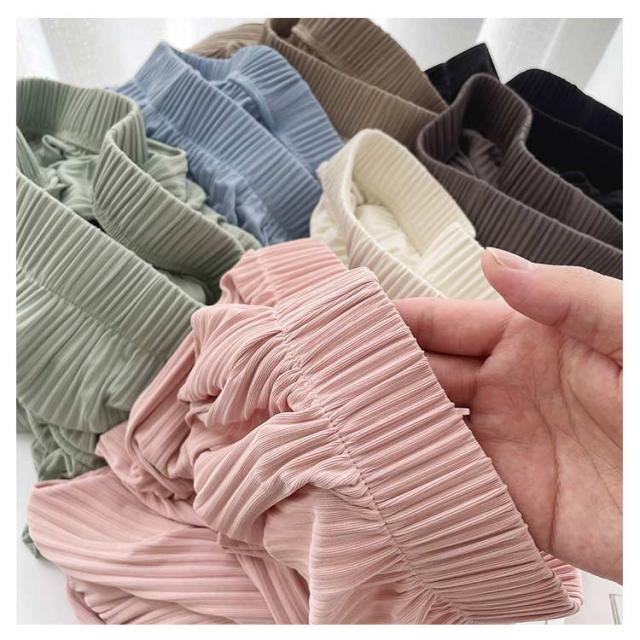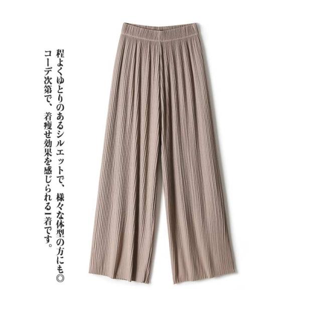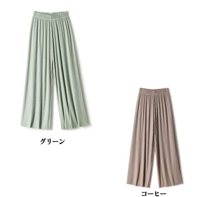 ボトムス ワイドパンツ 縦ライン プリーツパンツ ウエストゴム 涼しい プリーツパンツ レディース 光沢感 夏 接触冷感 ウエストゴム パジャマ 女性 夏服 プリーツパンツ パンツ 冷感 パンツ