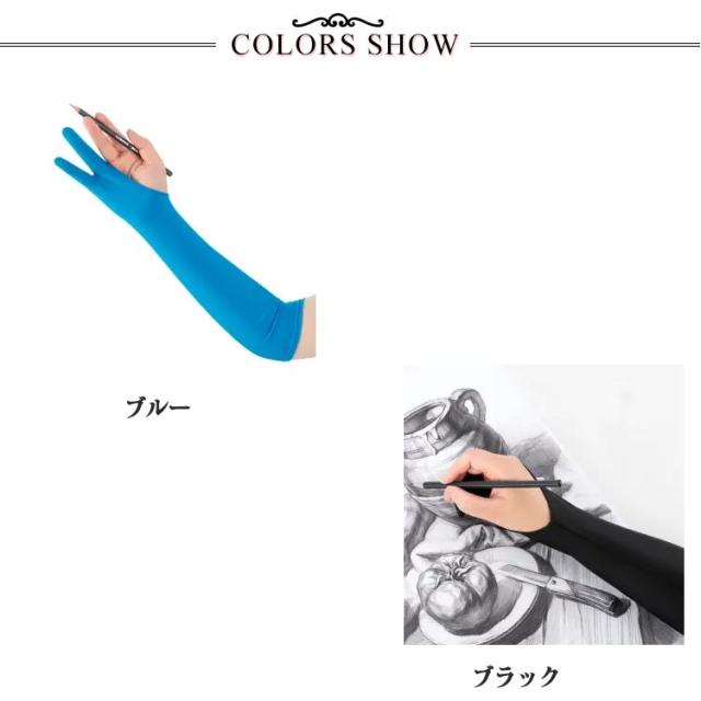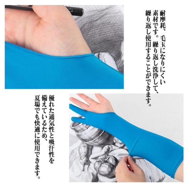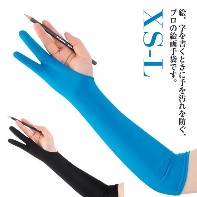ロンググローブ ひじ上 ロング手袋 グローブ 鉛筆・シャーペン等 アーティストグローブ 二の腕 絵描き手袋 お絵描き 手袋 2本指用 2本指グローブ イラスト 筆記 左右兼用 ペンタブレット トレーサー用