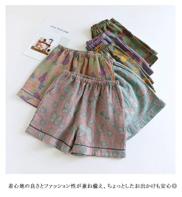 全7柄 レディース リンパ開放 全7柄 ダブルガーゼ 下着 綿麻 ルームパンツ ルームウェア ショートパンツ ふんどしショーツ 女性用 おやすみパンツ トランクス パンツ コットン ゆったり らくちん パジャマ かわいい 春夏秋