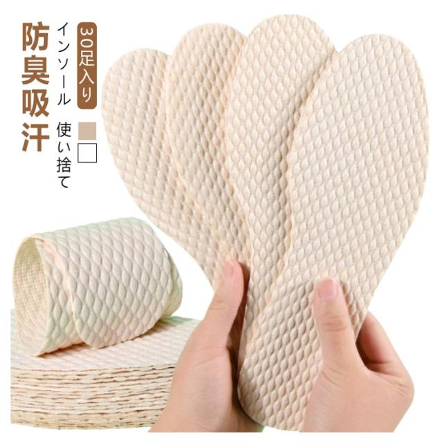 ペーパーインソール 素足 防臭 30足入り レディース インソール 抗菌 使い捨て 消臭 中敷き 吸汗 ブーツ ヒール 安全靴 清潔 足汗を吸収 スニーカー パンプス ビジネスシューズ 吸湿 紙製 使い捨て紙製中敷き インソール 革靴