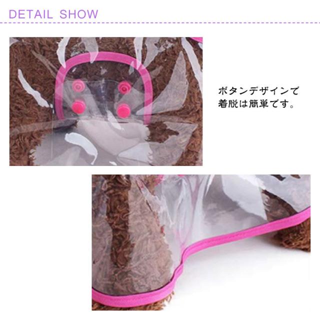 | 犬用透明レインコート。【完全防水材質】犬 レインコートの外層は高密度防水素材を採用し、防水が優 れ、豪雨にも散歩してもご愛犬体のが濡れないんです。雨の日のお散歩も安心です!透明だから前が見えて安心に散歩します。 【愛犬を保護】背中にはリード穴付き、お手入れも簡単です。犬用リードを通しても帽子を落とさない。雨天時でも、楽にお散歩しましょう!ボタンデザインで着脱は簡単です。 【脱着便利】防水性が優れた素材で作られたものです。防水がいい帽子が付き、頭から全体は風邪から犬の健康を守り。リード穴が付いていて便利、そして、下半分は蒸れ対策で大きく開放してます。運動時も排便時もワンちゃんの動きを損ないません。 【実用性能】洗っいて乾かすも容易な素材 なんならタオルで拭けばOKです。濡れずにお散歩します。雨の日、雪の日、強風の日、旅に出る、運動する、乗車する全てが楽しみになっちゃう、シンプルなのにおしゃれで可愛い犬用レインパーカーです。 | |