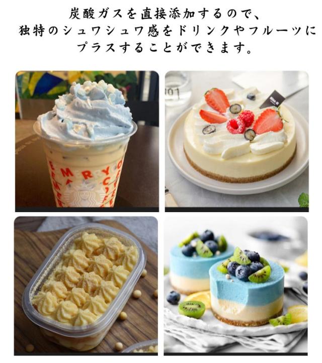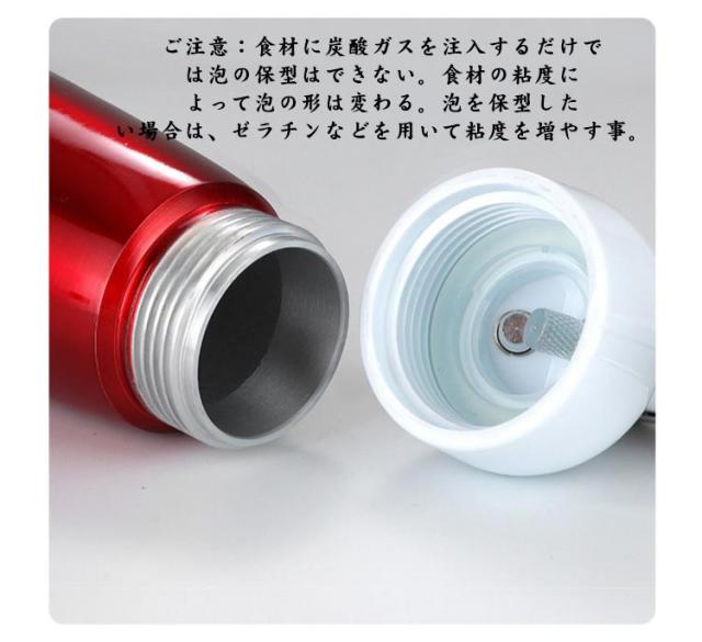 | 爽快な泡の刺激が楽しい、新感覚調理マシンです。 フルーツやアルコールなど、食材にCO2(炭酸ガス)を添加することで、発泡性の「泡」を作り出します。 炭酸ガスを直接添加するので、独特のシュワシュワ感をドリンクやフルーツにプラスすることができます。 ワインなら、スパークリングワインに! ウィスキーなら、ハイボールに!アップルジュースなら、シードルに大変身! 使い方:ボトルに食品(おもにペースト状または液体)を入れ、ヘッドをきちんと締める。そしてカートリッジホルダーにCO2のソーダカートリッジ(別売り)をセットする。カートリッジホルダーをヘッドに装着し、炭酸ガスを注入する。数時間または一晩おく。最後はボトルをよく振って、ボトルを逆さにしてレバーを押すとふわふわの食材を楽しめます。 ご注意:食材に炭酸ガスを注入するだけでは泡の保型はできない。食材の粘度によって泡の形は変わる。泡を保型したい場合は、ゼラチンなどを用いて粘度を増やす事。 | |