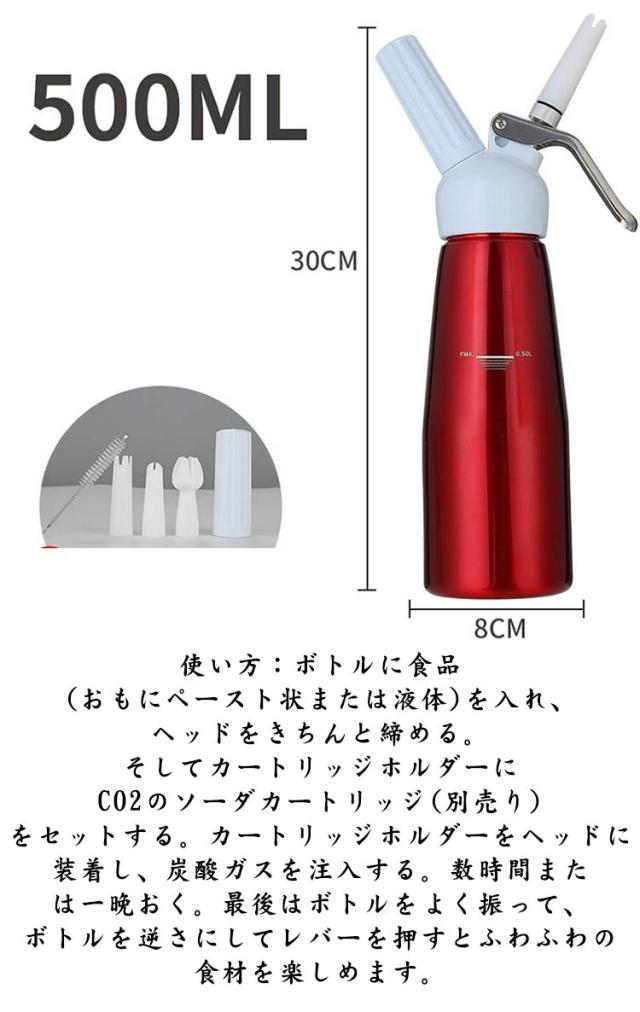 エススパークリング エススパークリング ソーダメーカー 500ML 炭酸水メーカー CO2エス クリーム絞り器 ムース アルミ合金 押出器 菓子作り用 キッチングッズ 調理器具 製菓道具 家庭用