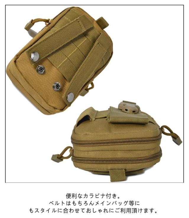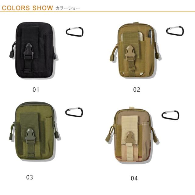 | 【ベルトポーチ】【多機能】【カラビナ付き】【全13色】 カラビナセットで使い勝手抜群な多機能ウエストポーチ!オールシーズン使える優秀モノ! 普段使いから作業用、ミリタリーなデザインがタクティカルポーチにもピッタリ。 サバゲーやアウトドア等にも相性バッチリなミリタリーポーチです。 便利なカラビナ付き。ベルトはもちろんメインバッグ等にもスタイルに合わせておしゃれにご利用頂けます。 耐久性に優れた素材で使い勝手抜群。買い替えの手間いらずです。 必要なアイテムがしっかり入る大容量収納。 コンパクトなのにジャストサイズ設計でマルチ装備も可能です。 | |
